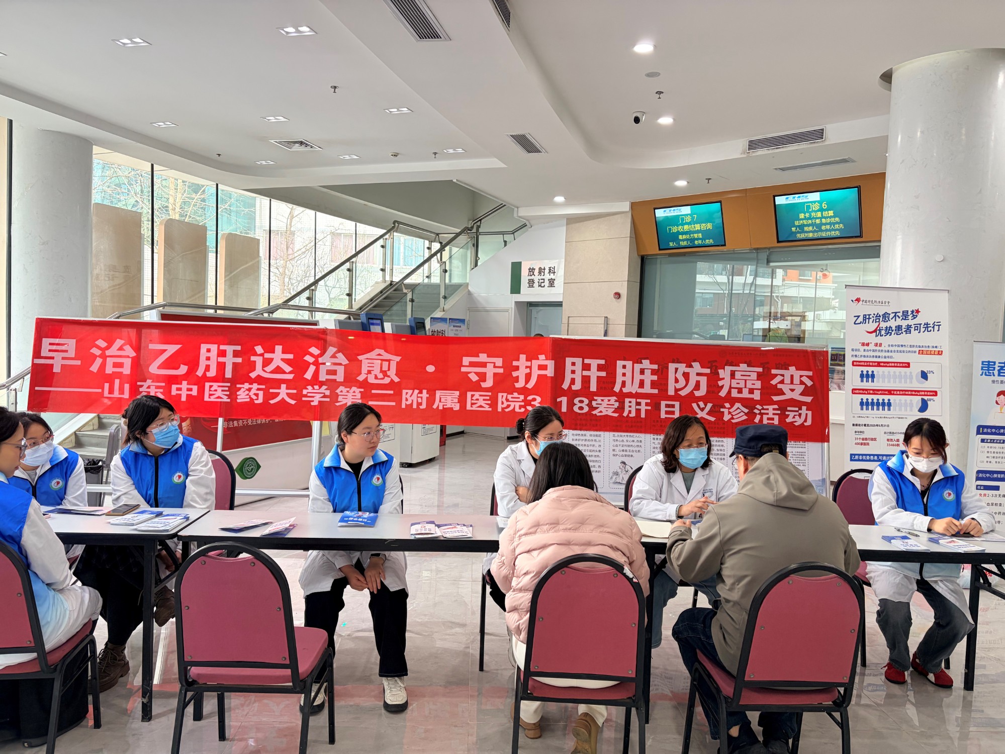 2026年3月18日是第26个"全国爱肝日",今年主题为"遏制肝硬化,远离肝癌"。为提高广大市民对肝脏健康的重视,普及肝病防治知识,践行"四有三好两满意"宗旨,我院消化中心于3月18日上午在医院门诊大厅举办"早治乙肝达治愈,守护肝脏防癌变"主题义诊活动。