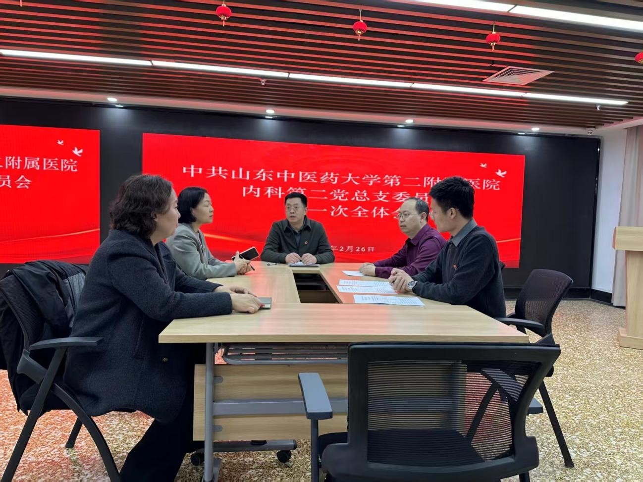 2 月 26 日下午,内科第二党总支在生殖楼四楼会议室召开党员大会,顺利完成换届选举工作。54 名正式党员、预备党员参加会议,会议由内科党总支书记汪浩主持。
