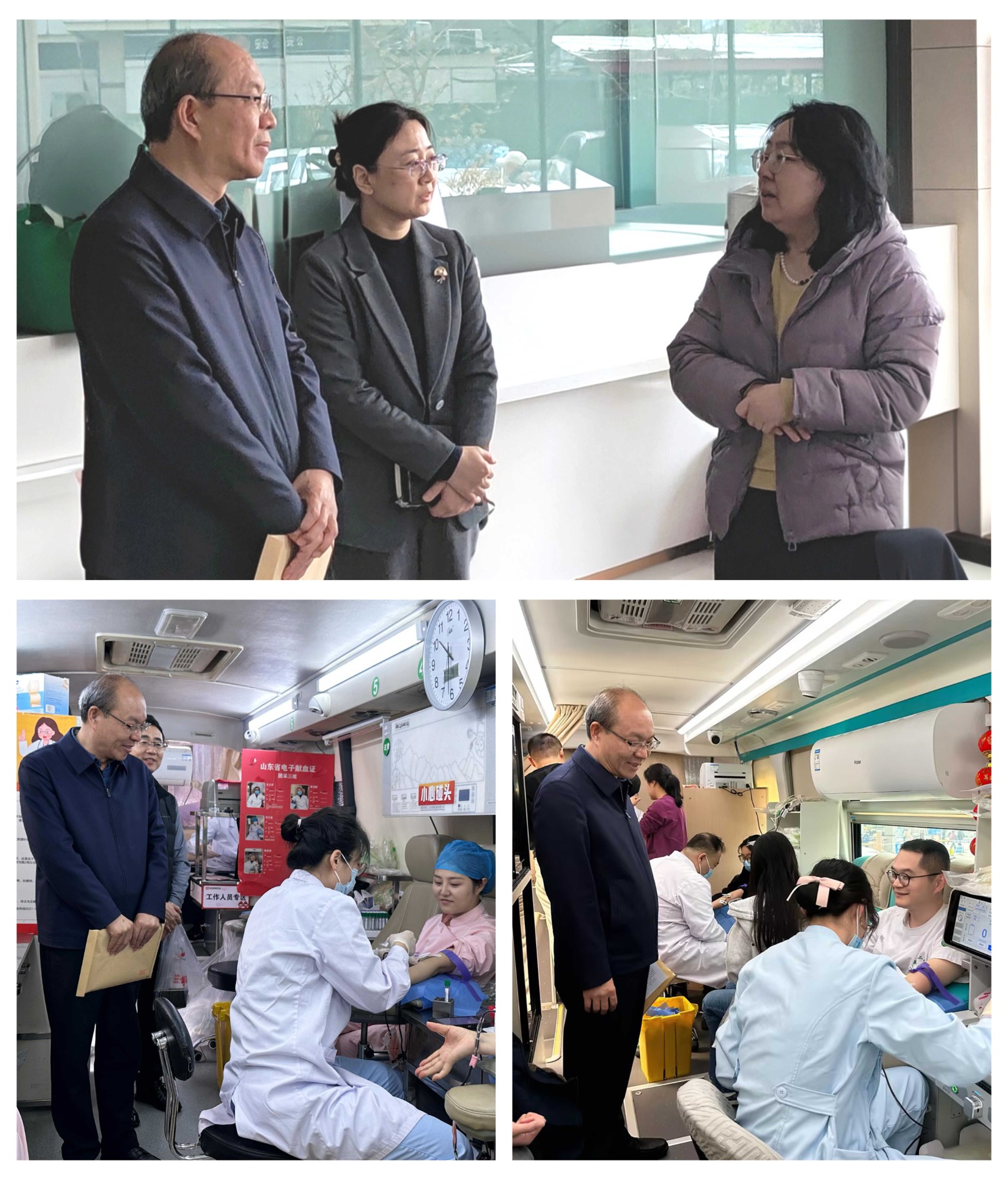 活动期间,院长李刚、副院长高红梅亲临现场慰问,并与山东省血液中心采供科主任王淑荣深入交流。院领导登上献血车,详细询问献血流程与保障措施,对职工的爱心善举给予高度肯定,并叮嘱相关职能科室务必做好后勤服务,让每一位献血者感受到家的温暖。各党总支书记也深入一线,为本总支的职工加油鼓劲,现场气氛热烈而温馨。